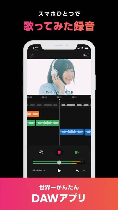 スマホだけで本格的な録音・編集が可能なアプリです。特別な機材や専門知識がなくても、高品質な音源作成や、自分の歌唱を豊富な伴奏と共に楽しめます。さらに、ほかのユーザーとコラボして、音楽を制作可能。歌い手を目指す方から音楽クリエイターまで、幅広くおすすめできます。