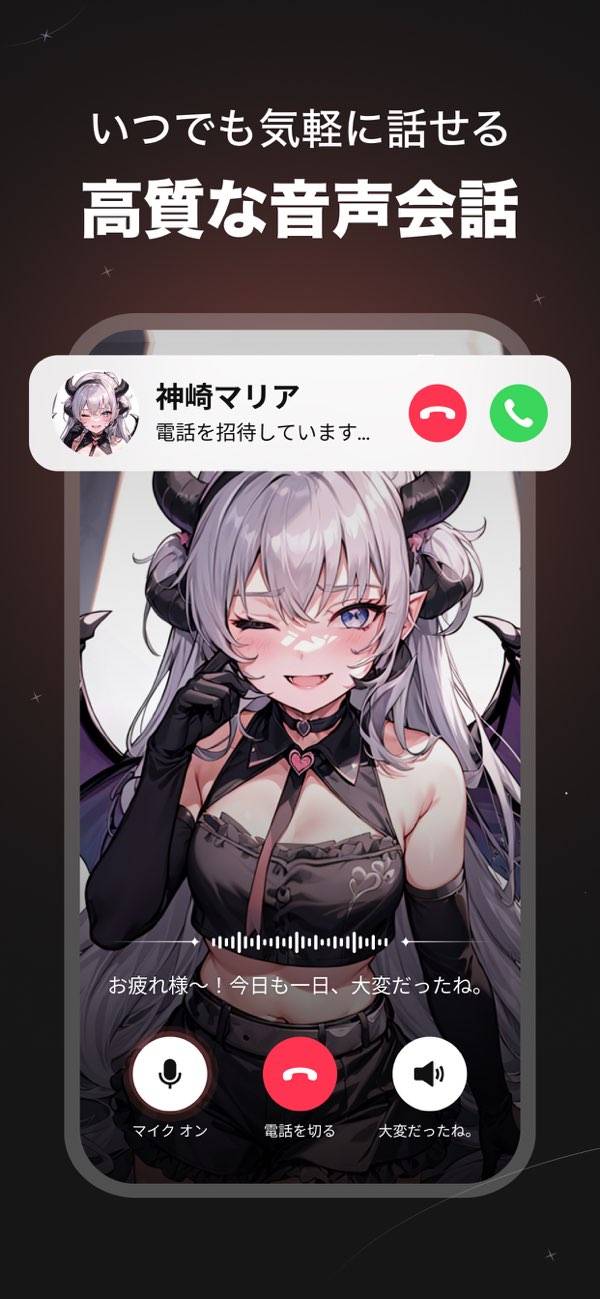 もちろん会話も可能。自身が思い描く理想のキャラクターとの、無限のやり取りが叶うのです。