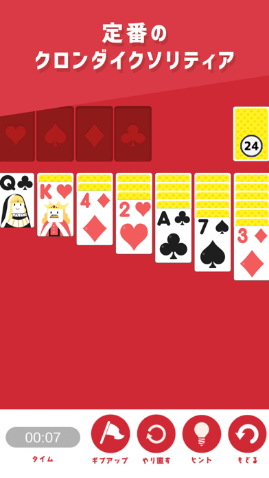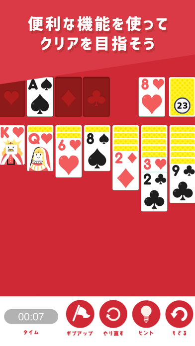 おなじみのソリティアを楽しみながらポイントを獲得できます。ポイントは1ゲームクリアにつき、1ポイント獲得できる仕様。「やり直す」や「ヒント」を活用しながらクリアを目指してください。