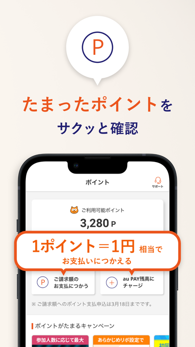 Pontaと連携すると、Pontaポイントの確認と利用が可能。貯めたポイントは、au PAY カードの支払いに充てたり、QR決済サービス「au PAY」の残高にチャージしたりできます。Pontaポイントを効率よく活用したい人におすすめの使い道です。