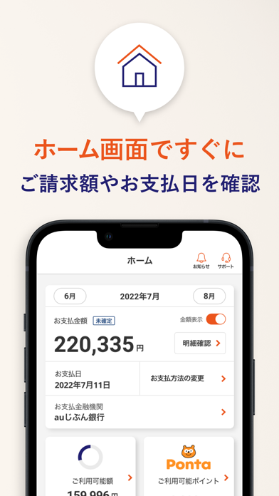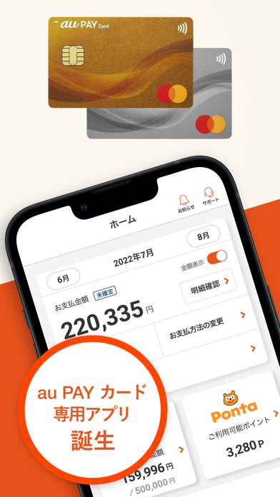 「au PAY カード」の利用や管理を便利に Pontaポイントの利用もできる
