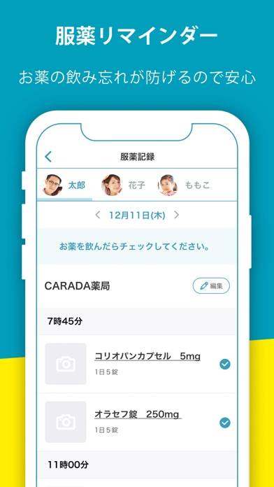 本アプリひとつで調剤予約から服薬記録まで! 家族全員の記録や管理も可能
