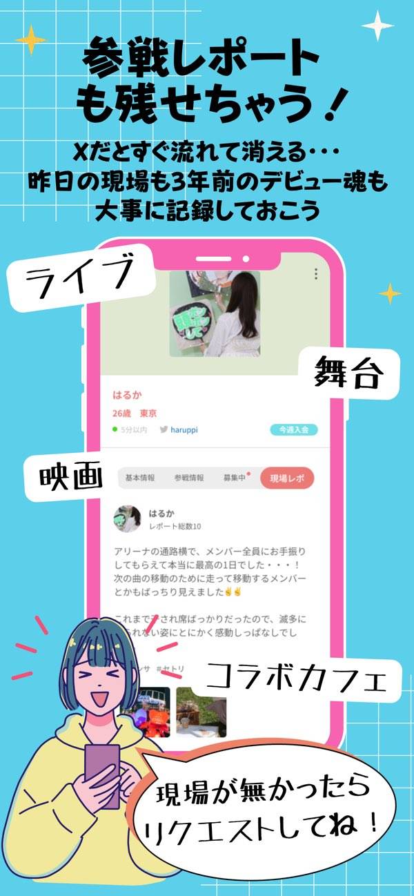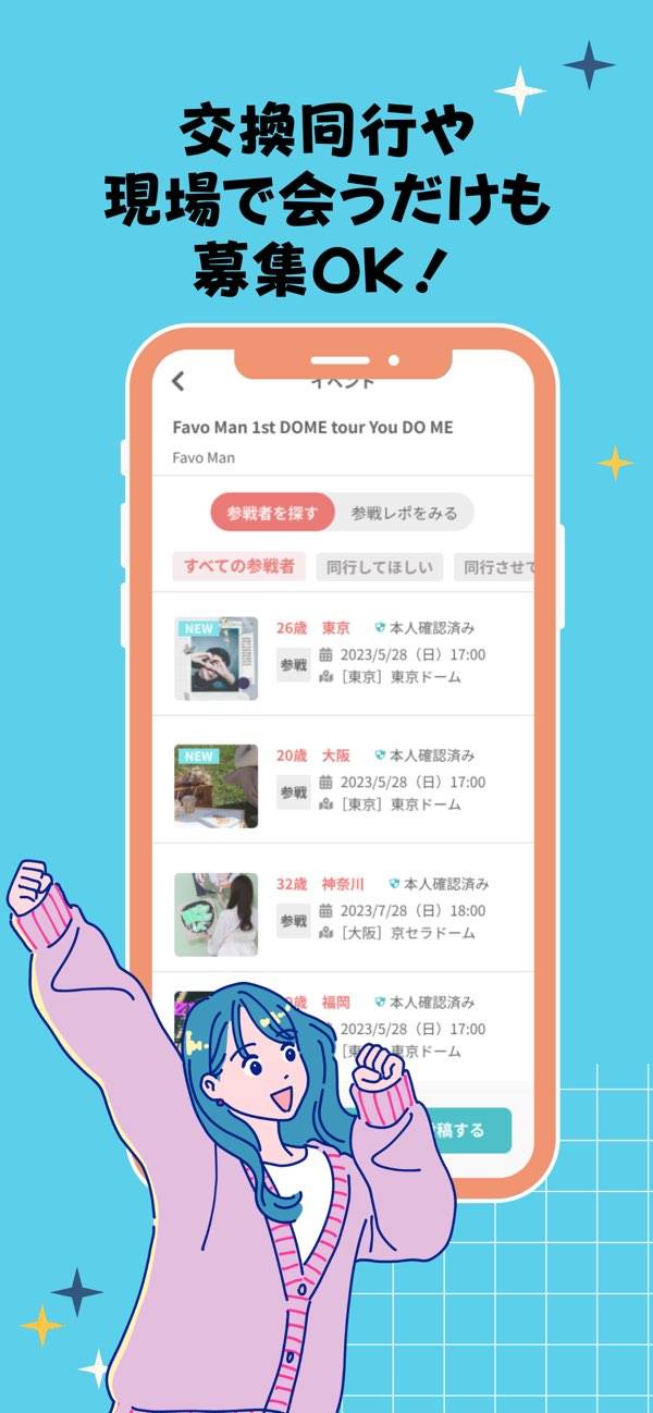 - 参戦イベント&ライブからオタ友を探せる。現地での交流やグッズ交換も