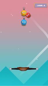 パチンコのように標的を狙撃するステージ制のパズルゲームです。目が付いた丸いキャラクター「バンパーくん」が主役。、赤いバンパーくんを弾いて、3手以内でほかの色のバンパーくんに当てられたらクリア。