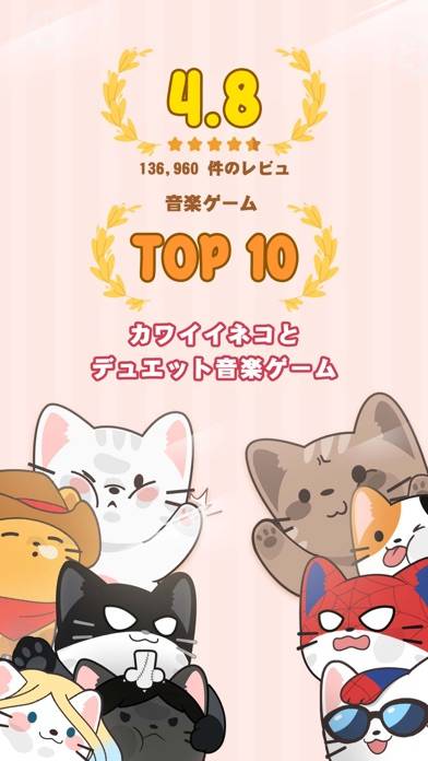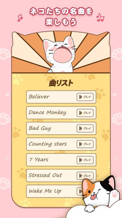 ネコ2匹のエサキャッチでリズムを奏でる音楽ゲームです。上から落ちてくるエサをネコが食べると歌唱。2匹分同時にエサが降ってくることもあり、ゲーム中はかなり慌ただしいです。ネコの種類も多く、模様や歌声もバラバラなので、お気に入りのネコ探しもはかどります。