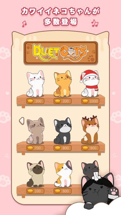 ネコやエサをショップで入手すると、ゲーム中のスキンを変更できます。特に、ネコの種類が驚くほど豊富。ネコは色や模様だけでなく、歌声もそれぞれ異なります。ネコの入手条件も多様で、クリア報酬のコインやクリア楽曲数、ログイン日数などさまざま。