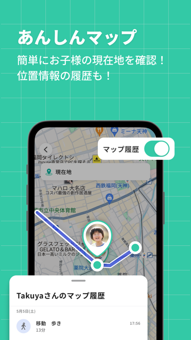 - GPSでわが子の位置がわかる。帰宅通知も届いて安心