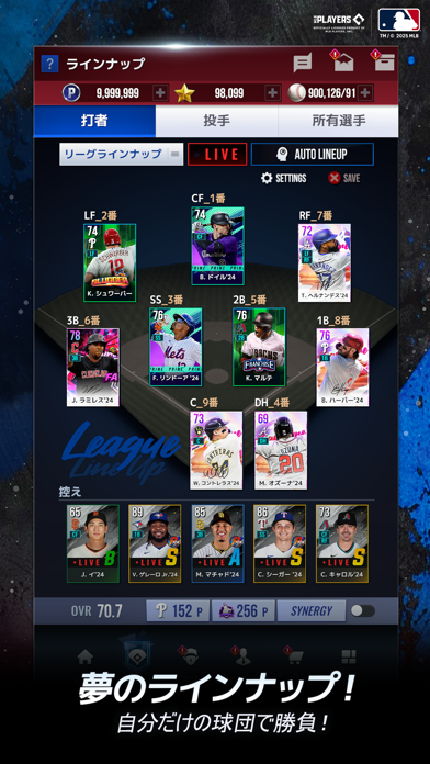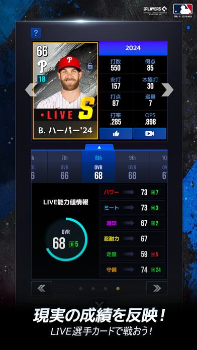 リアルのMLBにも釘付け。実際の成績により、ポジションや能力値が変動するLIVEシステムにも注目です。リアルで活躍したメジャーリーガーを本作でも活躍させるといった、連動要素ならではの楽しみがあります。