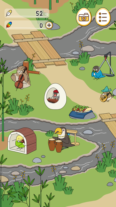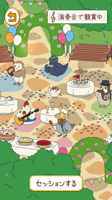 音楽と小鳥に癒やされる放置ゲーム。旅する音楽家のスズメとして、演奏家の鳥たちと自分だけの音楽を作ります。広場にグッズとごはんを置いて少し待つと、鳥たちが遊びに来て楽器演奏。鳥ごとに得意楽器も違うため、集まった鳥によってハーモニーもさまざまです。今回はどんな演奏か、アプリを開くたびにワクワクするでしょう。