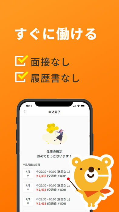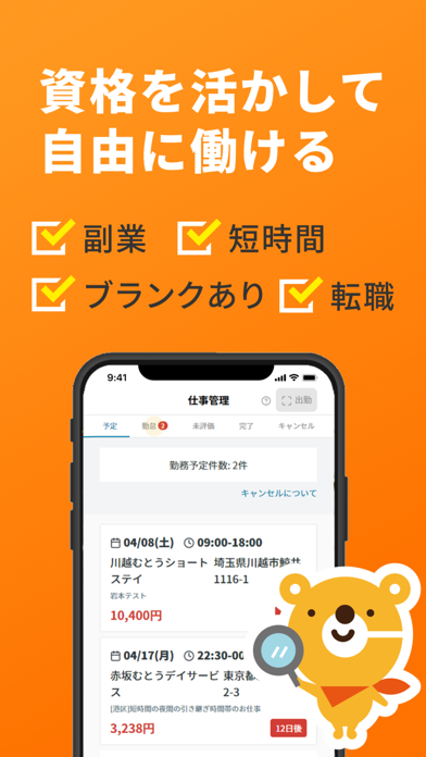 看護や介護の資格を持つ方に最適な求人アプリです。スケジュールに合わせて単発バイトを見つけることができ、忙しい日常の中でも効率的に収入を得ることができます。さらに、給与が当日振り込まれるため、急な出費にも対応しやすいです。専門職としてのスキルを活かしながら、自由な働き方を実現したい方におすすめ。