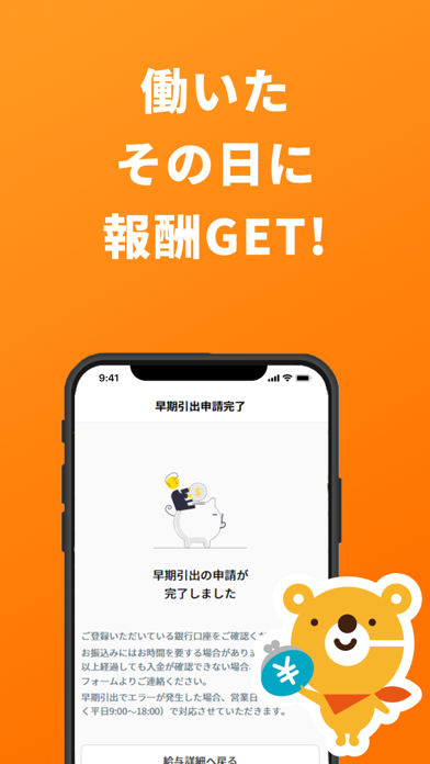 働いたその日に給与を受け取ることができるのが大きな魅力。最短で15分以内に振り込まれるシステムを採用しているため、急な出費や予期せぬ支払いに対応しやすいです。また求人によっては、追加報酬がもらえる場合もあります。