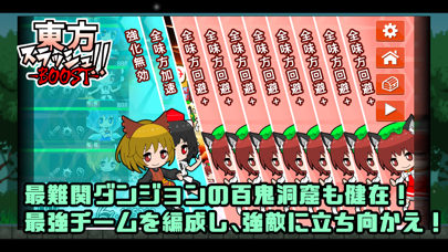 ステージをクリアすると仲間が増え、編成できるようになります。スキルや装備などのチェックも編成画面から可能。理想のパーティーを組んで、幻想郷を自由に冒険してください。