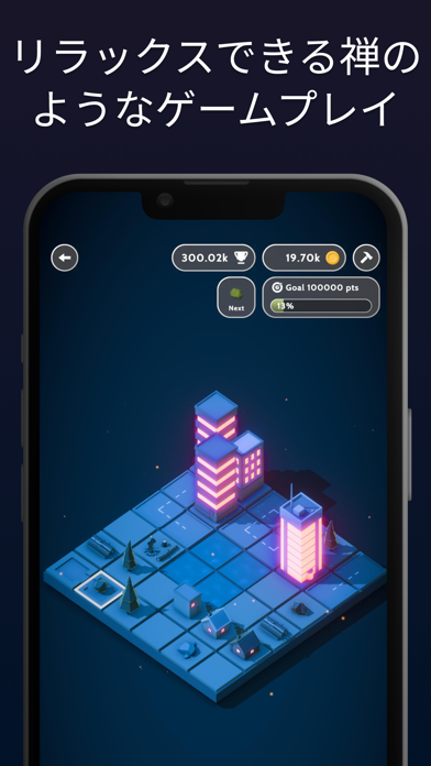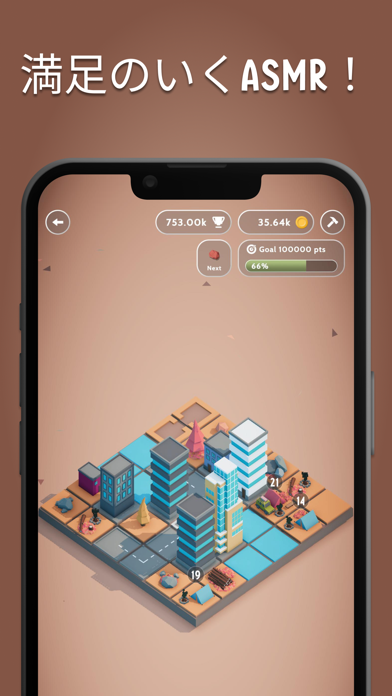 動かせるパネルが無くなるとゲームオーバーになり、スコアが表示されます。あなたの町はどんな姿になったか、シェアして誰かに見せることが可能。ミニチュアのようなビジュアルでかわいいですよ。