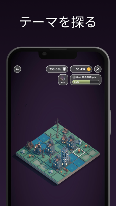 マッチさせればさせるほど、町が発展していくパズルゲーム。例えば草むらを3つマッチさせると木になり、木を3本マッチさせると資材になります。5×5の狭いフィールドで、どれだけマッチさせて町を発展させられるか、あなたの頭脳にかかっています。
