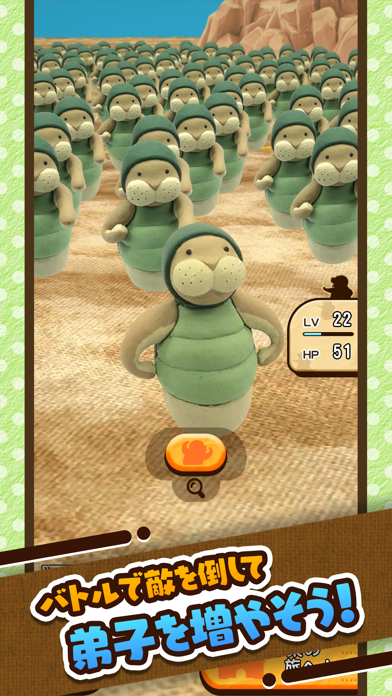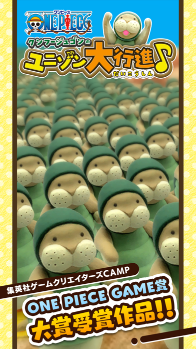 人気漫画『ONE PIECE』の「クンフージュゴン」が主役のリズムアクション。かけ声に合わせてボタンをタップすると、クンフージュゴンが前進します。途中で敵のジュゴンとのバトルもあり、勝利すると弟子として仲間入り。