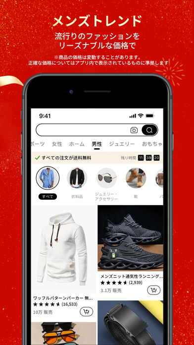 本アプリの魅力はその価格の安さにあります。筆者が軽く確認してみた限りでも、メンズの冬用スニーカーが1,585円(税込)、コンパクトドライヤーが2,241円(税込)と破格の値段で商品が売られていました。