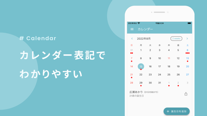 - 家族や友達の誕生日が迫るとリマインド! 通知の日時も細かく設定可能