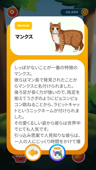 - クイズの後は猫あつめ。各猫に詳しい解説があり、猫にも詳しくなれる