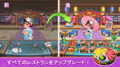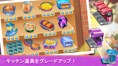 売上金を使って、調理器具や食材をアップグレード。調理器具は、調理時間の短縮や一度に調理できる食材数の増加が可能です。食材は、単価が上がるだけでなく、料理の見た目が豪華になり高級感もアップ。次第に難しくなるステージに備えましょう。