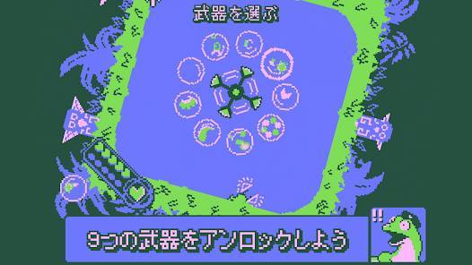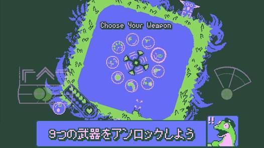 懐かしさを感じるドット絵の弾幕STG。スワイプでステージを回転させるようにキャラを動かし、ショットを連発して敵を倒します。突進のようなダッシュ移動もでき、爽快感も抜群。1ステージ目から敵が多く、遊びごたえがあります。