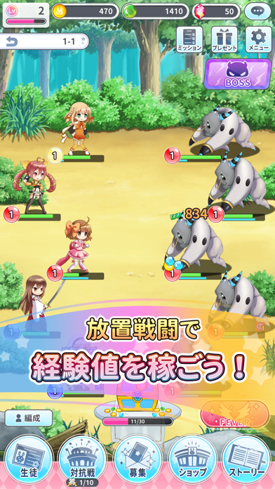 単なるデータベース系のアプリではなく、RPGとしても楽しめるのがポイント。もう1度グリモアの転校生として、魔法使いの少女たちとともに霧の魔物との戦いに挑みましょう。