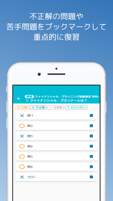 出題された問題に◯か×で答えていき、解説を見ながら勉強できます。テキストの何ページに詳しい記述があるかも教えてくれるので、復習もしやすいでしょう。本アプリで繰り返し問題に挑戦することで、試験対策につながります。
