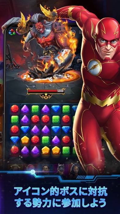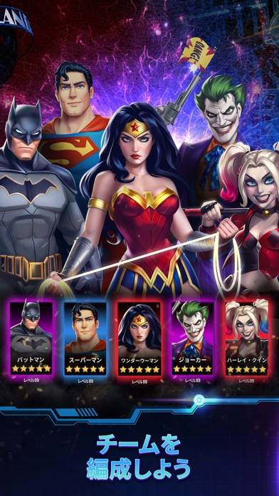 DCコミックスのヒーローとヴィランで夢のチームを結成! バットマン、ジョーカー、スーパーマンらでチームを組み、マッチ3パズル形式のバトルに挑むRPGです。