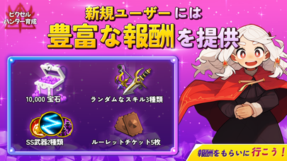 開始1分でドット絵のクオリティに驚愕!? 3Dのように滑らかに動くドット絵に注目の放置型RPGです。基本的には放置でOK。一方で移動と武器切り替えなどはマニュアル操作に対応しているため、気が向いたらゲームに介入できるのも嬉しいポイントです。ところでタイトル画面の天使は一体何者なのでしょう……?