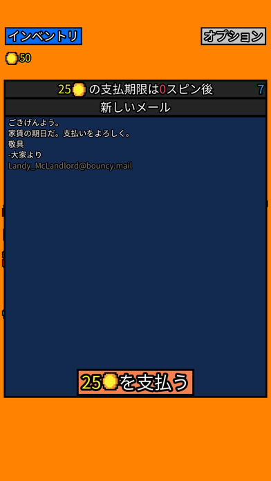 大家さんから家賃値上げのメールが、支払いするたびに届きます……。効率よくコインを獲得できないと、支払期限に間に合わないこともしばしば。このシビアさがこのゲームの魅力となっており、何度でも挑戦したくなります。