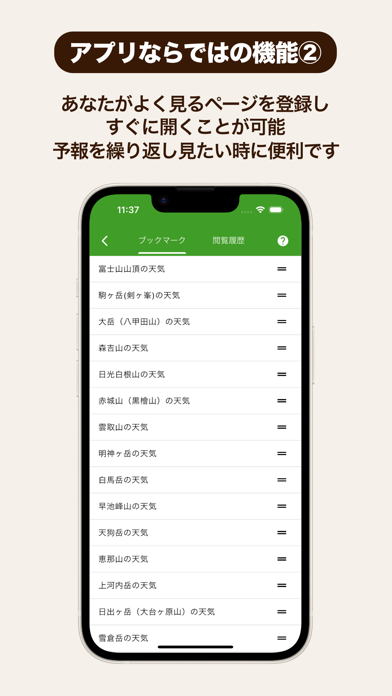 山や遊園地など、レジャースポットに特化した気象情報アプリ。中でも、登山の安全や快適さを示す「登山指数」が優秀。登山に適した気候かどうかが瞬時に判断できます。また、紫外線や洗濯指数など、日常生活に役立つ情報も網羅。気象情報をもとに、アウトドアから生活まで幅広く手助けしてくれます。