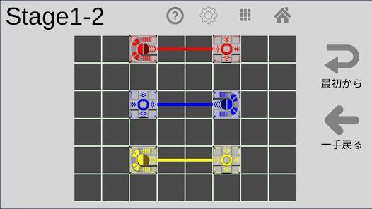 色の見極めが攻略のカギ。発射したレーザーは「一手戻る」か「最初から」を押さない限り戻せないため、発射の順番が重要。