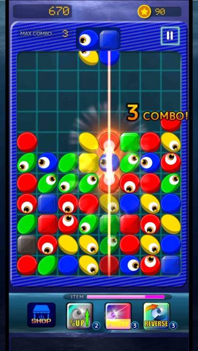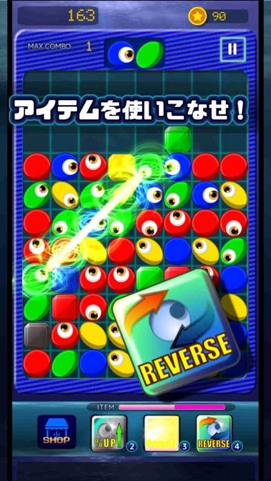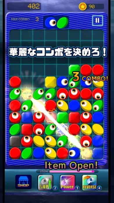 同じ色の細胞の視線を向かい合わせにすることで、挟まれたブロックを消せます。類似アプリには無いような、一風変わったスタイル。赤、青、黄色、緑のブロックは同じ色の視線で消えますが、黒色は視線を通さないので注意が必要です。