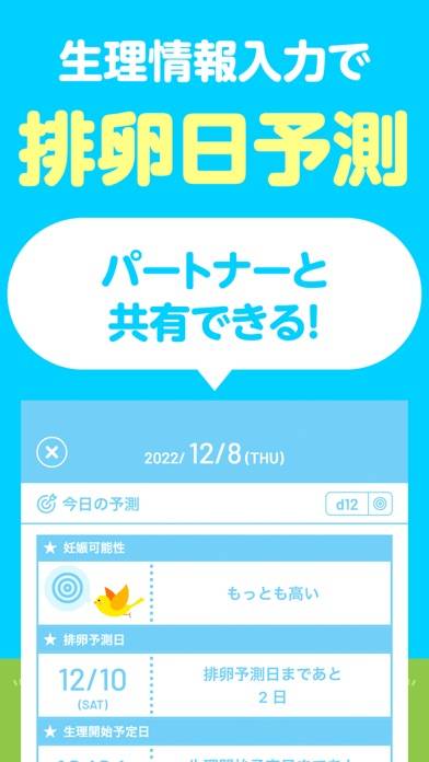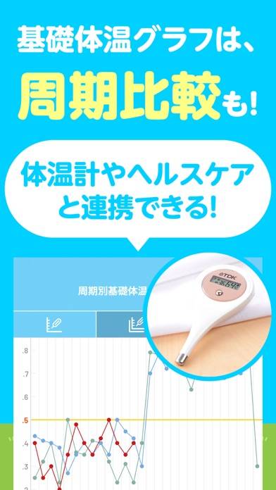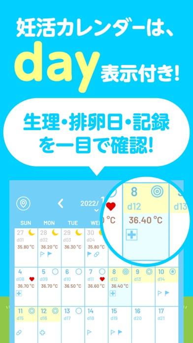 - 生理日の記録はワンタップで簡単。排卵日や妊娠の可能性も予測