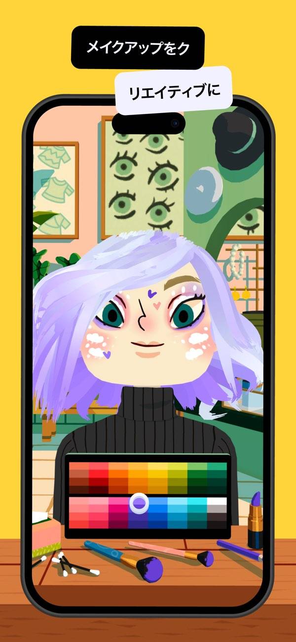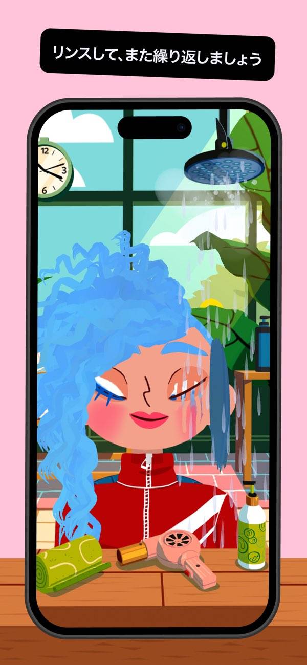ヘアサロンを舞台に、理想の髪型を仕上げるシミュレーションアプリ。ヘア・フェイス・スタイル・シャンプー・フォトの5つの部屋を移動しながら、お客さんの髪をスタイリングしていきます。美容師道具がとても多いため、実現できるヘアスタイルも多種多様。シャンプーや服のコーディネートもできます。