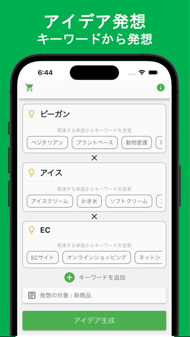 - 入力されたキーワードをもとに、AIがアイデアを出してくれる補助ツール