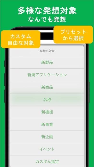 アイデアの生成前に「発想の対象」を切り替えられます。「新製品」や「新規アプリケーション」などがあり、「発想の対象」に合わせて、出力されるアイデアの温度感が変化します。またカスタム指定もあり、「物語」を指定するといった使い方もできます。