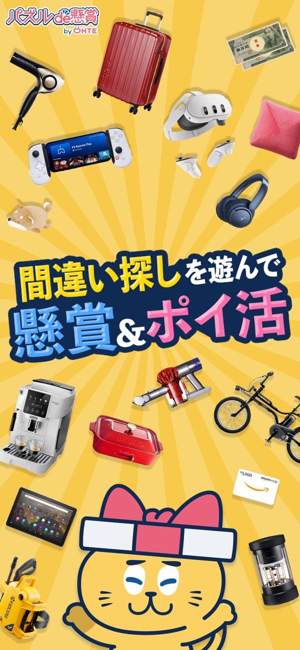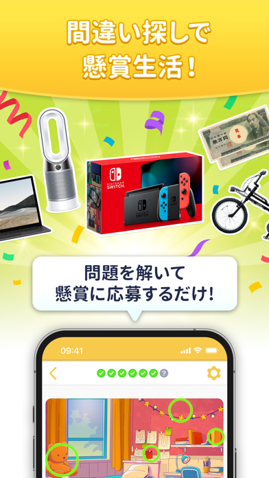 間違い探しをすることで、豪華賞品がそろう懸賞に参加できるアプリです。2枚の画像から異なる箇所を見つける間違い探しをクリアして、懸賞応募に必要なポイントを獲得。ポイントを使って、便利グッズや現金などが当たる抽選に応募できます。問題数が豊富で、定期的な問題追加もあるため、長期間続けやすいです。