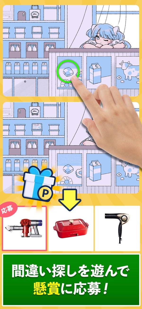 - 間違い探しをクリアして応募ポイントゲット。制限時間なしのライフ制