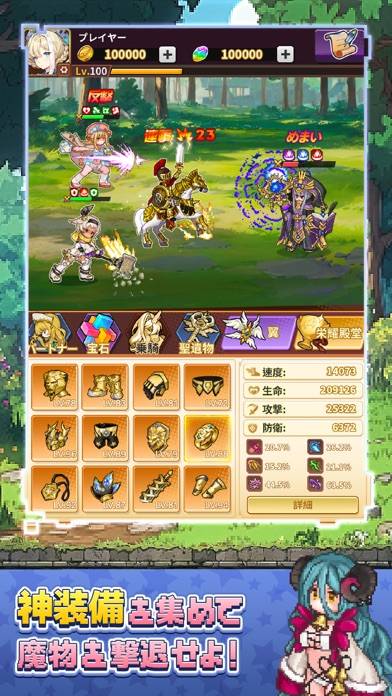 一風変わったゲーム進行と、ゲームを彩る美少女が魅力のRPGです。宝箱を開けると、装備と同時にプレイヤー経験値が入手できる仕組み。プレイヤーLVに応じて新たなコンテンツが開放されていきます。