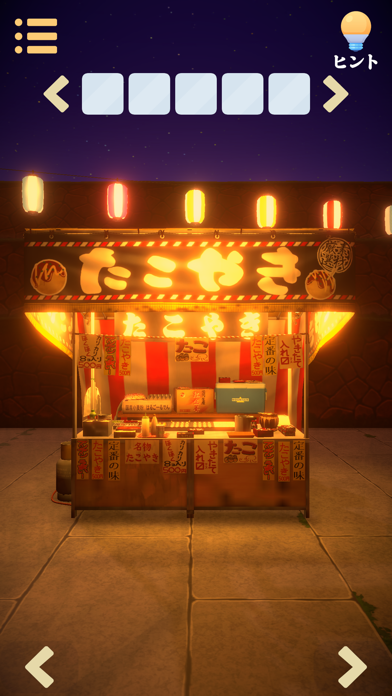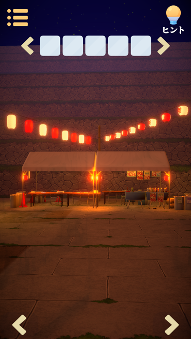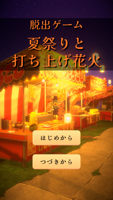 花火大会と夏祭りをテーマにした脱出ゲーム。屋台の商品を使って謎解きをしながら先へ進み、丘の上で花火が上がる瞬間を迎えます。りんごあめやチョコバナナなど屋台の数が多く、見ているだけでもワクワク。お祭り会場のあちこちにいるネコも気になります。夏祭りの雰囲気が大好きな人におすすめです。