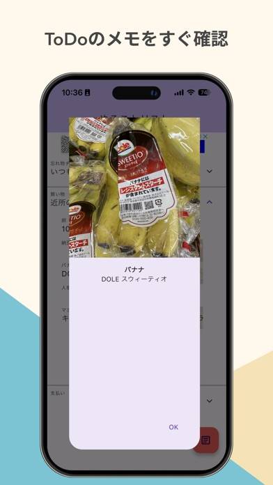 シェアボタンからToDo+子ToDoの内容をまとめてコピー&ペーストできます。一つひとつコピーする必要がなく簡単にシェア。買い物リストを家族に共有したいときにサッと使えそうですね。