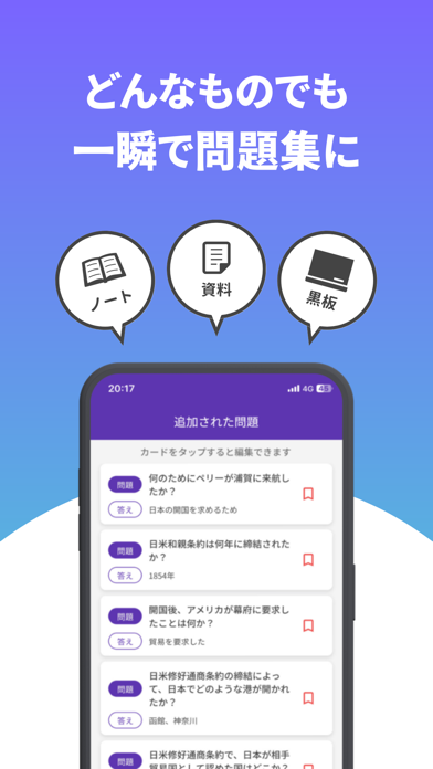 - ノートを撮るだけで一問一答が作れるから、自作の手間がかからない