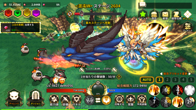- バトルもステージ移動もオート進行。何をせずともキャラが強くなる