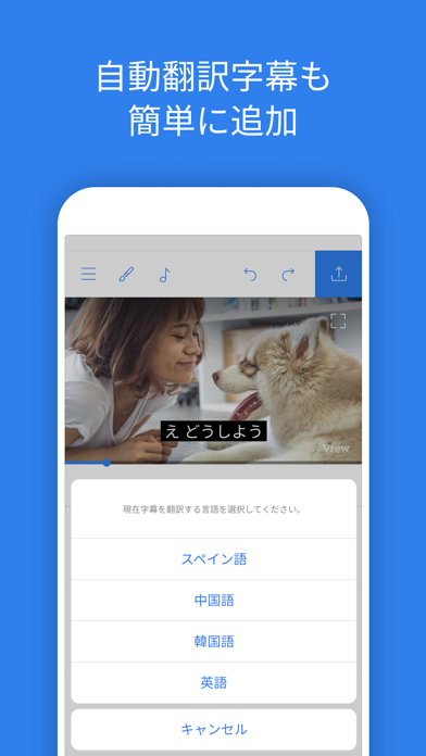 AIを利用した字幕入れやカットが簡単にできる動画編集アプリ。撮影動画を読み込むだけで、AIが自動でテロップやクリップ分割をしてくれます。テロップ挿入とカット編集が同時にできるため、作業の時短にもなります。