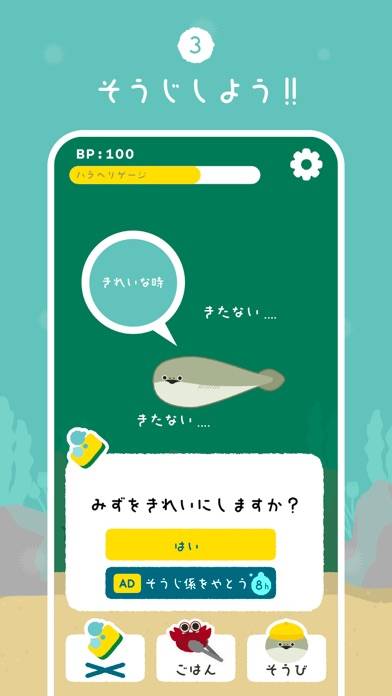 動画広告を見ることでそうじ係のエビを雇えます。8時間の間、水をキレイに保ってくれる頼り甲斐のあるサポーター。バスピは水が汚れすぎると死んでしまうので、清潔を保つようにしましょう。