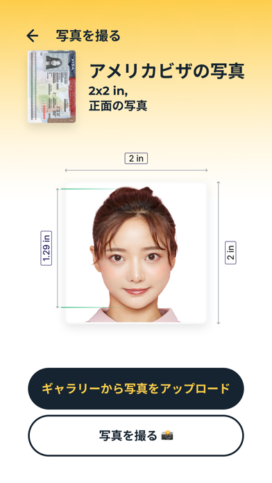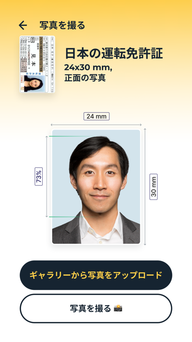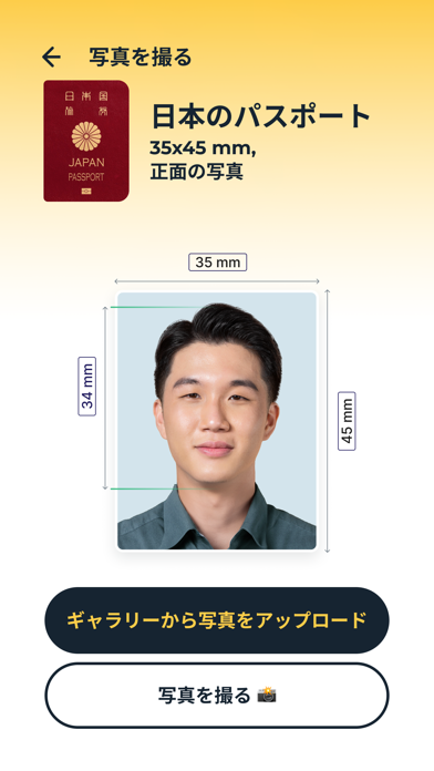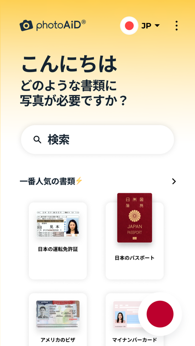 日本のパスポート、マイナンバーカード、履歴書などの写真に対応。表示する国を切り替えると、アメリカやイタリアのパスポート用の証明写真も作れるようになります。幅広い写真に対応しているのが嬉しいですね。