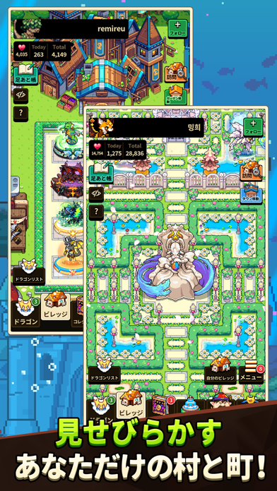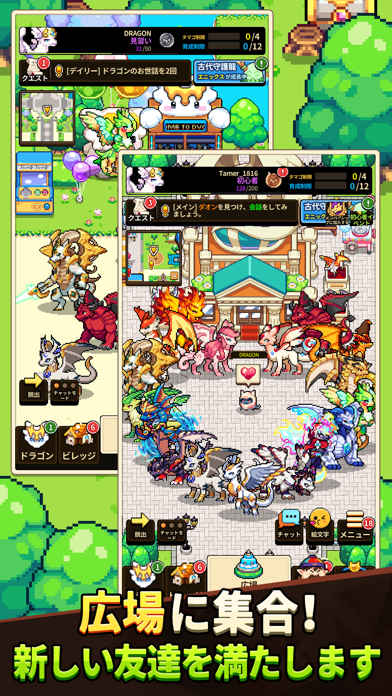 - ドットで描かれた鮮やかな世界。行き交うドラゴンたちを眺められる