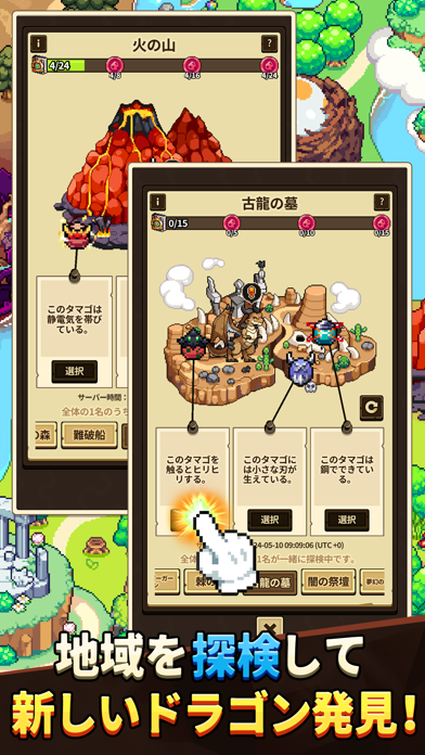 - 鉱山、墓、森などを訪れ、さまざまなドラゴンの卵を手に入れられる