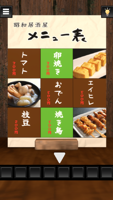 大将が切り盛りしている、昭和居酒屋からの脱出を目指すゲーム。店内はあなた一人しかおらず、大将も訳知り顔です。自由に探索して、暗号やヒントを見つけていきましょう。