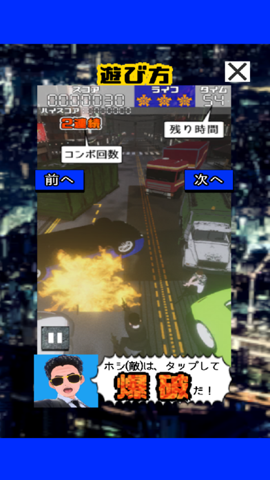 タップで悪人を倒していく、お手軽かつ爽快感のあるもぐらたたきゲーム。刑事・西門郷介となって、銃撃戦を生き残りましょう。3回被弾してしまうと殉職してゲームオーバーになってしまいます……。